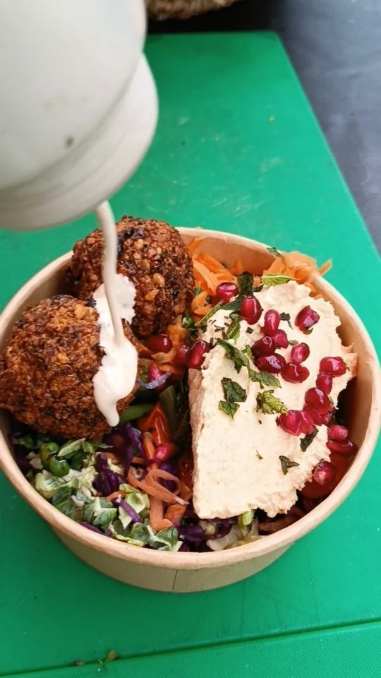 We are Wrapped, a Somerset-based street food business selling fresh & healthy salads, hummus and authentic Lebanese flatbread wraps